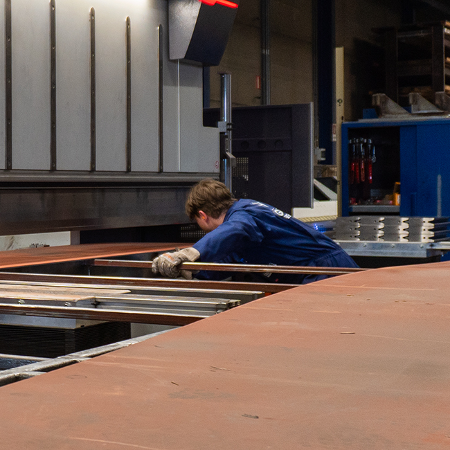 Onze plooiafdeling vormt stalen platen volledig op maat en met grote precisie. Dankzij ons moderne machinepark kunnen we zowel eenvoudige als complexe plooibewerkingen uitvoeren met een constante kwaliteit.